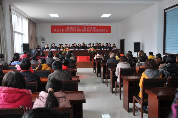 2月28號下午,黃山學(xué)院和我公司舉行校企合作培訓(xùn)班開學(xué)典禮暨就業(yè)實習(xí)基地揭牌儀式,縣委常委、宣傳部長蔣曉放、縣人大常委會副主任程春偉、縣政協(xié)副主席程海兒、黃山學(xué)院副院長樊嘉祿出席儀式,縣人社局、經(jīng)信委、科技局、團縣委、公司負責(zé)人及繼續(xù)教育班75名