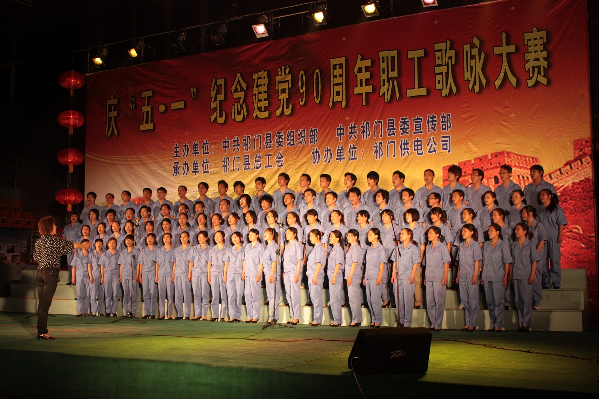 為慶祝“五·一”國際勞動節(jié),喜迎中國共產(chǎn)黨成立九十周年,豐富公司廣大職工的精神文化生活,充分展示公司職工的風采,大力營造文明和諧、團結奮進的濃厚氛圍。公司合唱團于四月二十八日晚參加了祁門縣慶“五·一”暨紀念建黨90周年職工歌詠大賽活動。經(jīng)過專家評委的現(xiàn)場打分評選,我公司合唱團演唱的《歌唱祖國》和《咱們工人有力量》獲得了9.58分,榮獲三等獎。