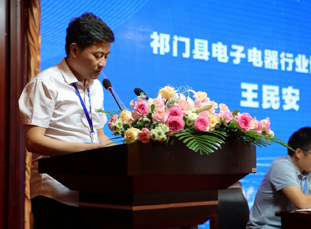 7月24日,由祁門縣多家電子電器企業(yè)發(fā)起,經(jīng)主管部門審批同意,祁門縣電子電器行業(yè)協(xié)會成立大會在祁紅國際大酒店舉行。公司總經(jīng)理王民安當(dāng)選為祁門縣電子電器行業(yè)協(xié)會首任會長。